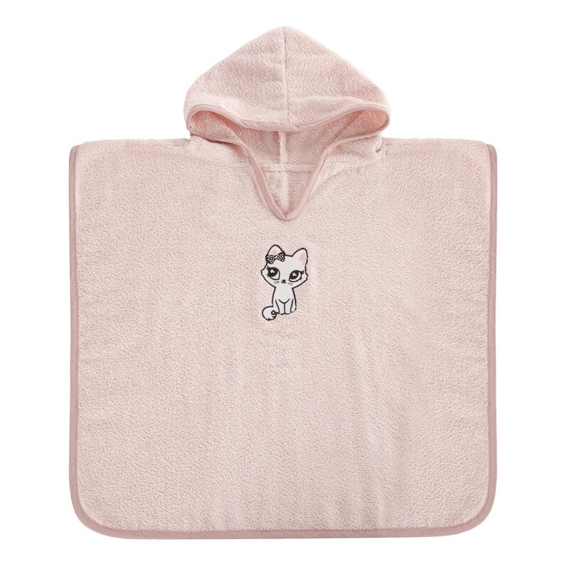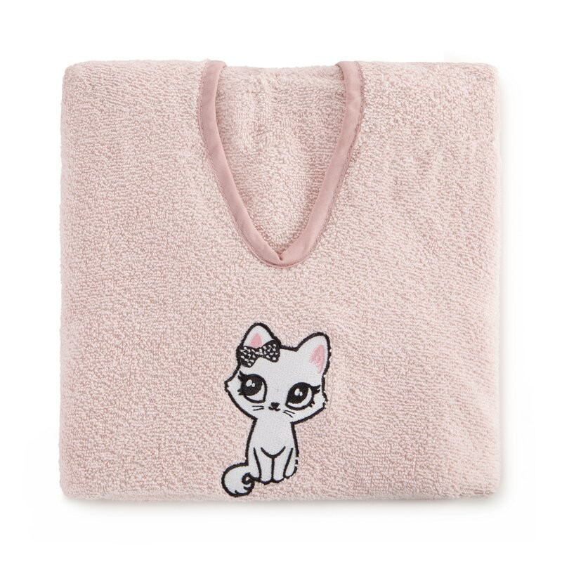 Ponczo kąpielowe dziecięce 60x120 cm bawełniane kolor różowy z aplikacją kotka 310 g/m2 BABY 72 Eurofirany