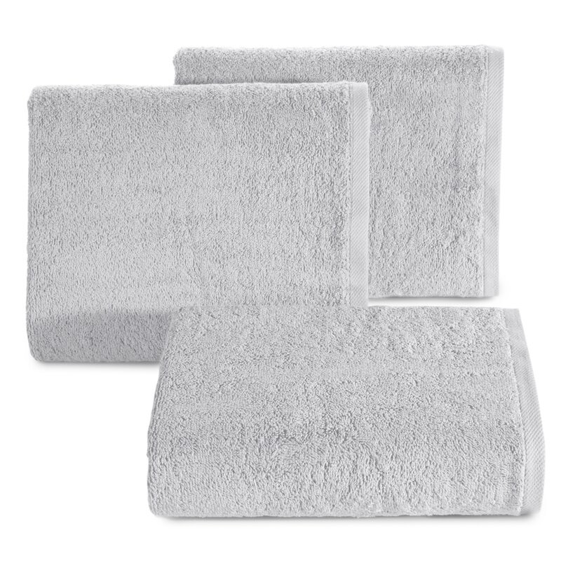 Jednokolorowy, gładki ręcznik kąpielowy z miękkiej tkaniny bawełnianej o splocie frotte. Lekki, trwały i bardzo chłonny. Kolory odporne na częste pranie. szerokość: 70 cm, długość: 140 cm, kolor: srebrny, Gramatura: 500 GSM, Skład: 100% bawełna SZT.3