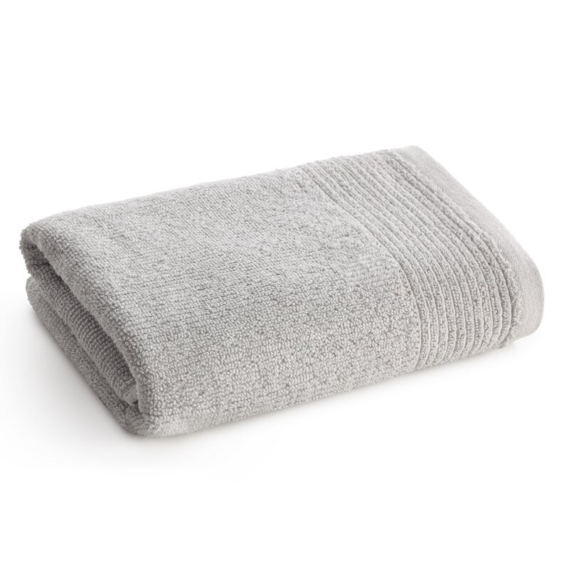 Jednobarwny ręcznik z miękkiej i chłonnej tkaniny bawełnianej o splocie frotte zdobiony kolorową bordiurą w stylu fastrygi. Łatwy w praniu, nie farbuje. szerokość: 50 cm, długość: 90 cm, kolor: kremowy, Gramatura: 500 GSM, Skład: 100% bawełna;...