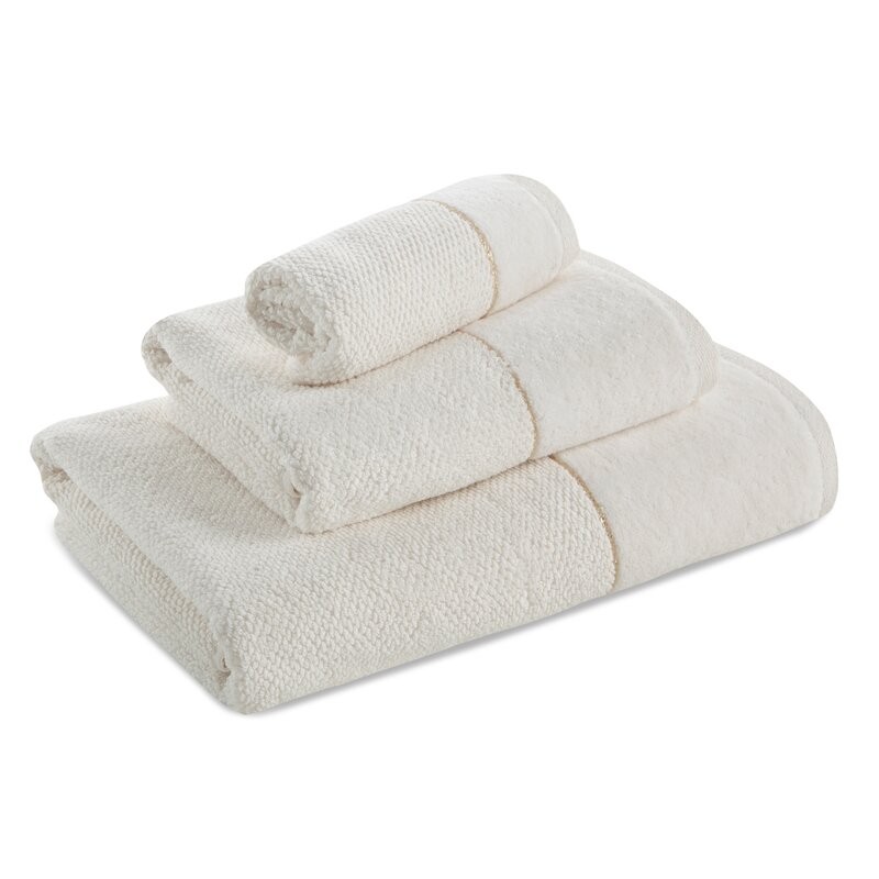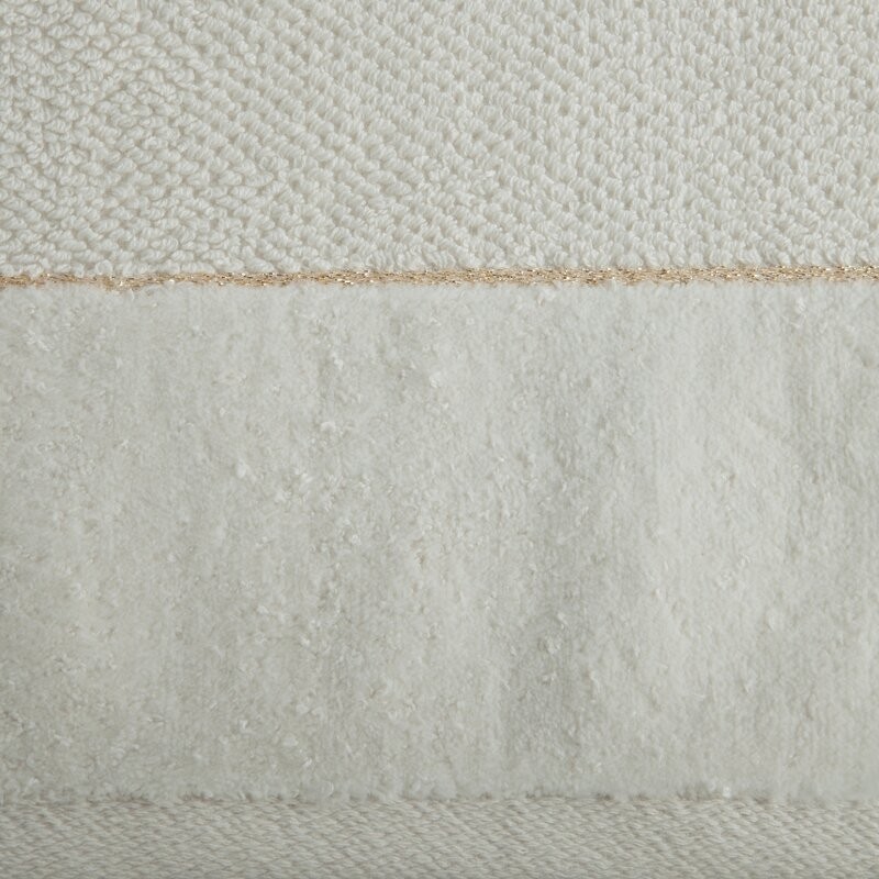 Jednobarwny ręcznik z miękkiej i chłonnej tkaniny bawełnianej o splocie frotte zdobiony kolorową bordiurą w stylu fastrygi. Łatwy w praniu, nie farbuje. szerokość: 50 cm, długość: 90 cm, kolor: kremowy, Gramatura: 500 GSM, Skład: 100% bawełna;...