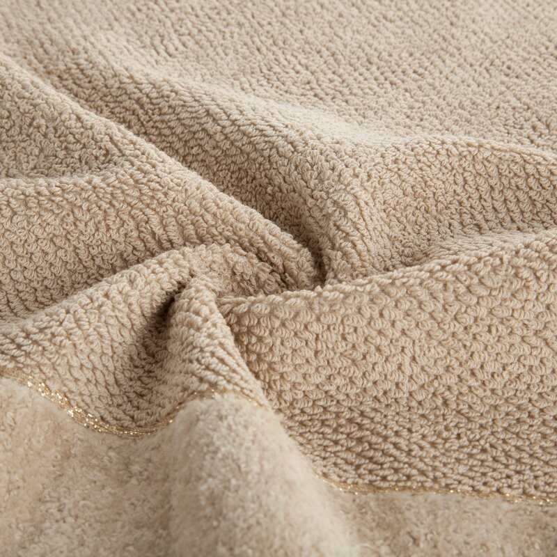 Ręcznik bawełniany ARIA to połączenie elegancji i najwyższej jakości wykonania. Wykonany z miękkiej, chłonnej bawełny o gramaturze 550 g/m², zapewnia doskonały komfort użytkowania. Ozdobny element w postaci welwetowej bordiury oraz subtelnego paseczka z błyszczącej nici dodaje mu luksusowego charakteru. Ręcznik wyposażony jest w praktyczną pętelkę do zawieszenia, dzięki czemu łączy funkcjonalność z eleganckim wyglądem. Idealny do stylowych łazienek, hoteli lub jako prezent dla wymagających.