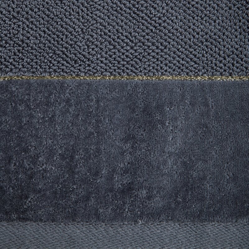 Jednobarwny ręcznik z miękkiej i chłonnej tkaniny bawełnianej o splocie frotte zdobiony kolorową bordiurą w stylu fastrygi. Łatwy w praniu, nie farbuje. szerokość: 70 cm, długość: 140 cm, kolor: czarny, Gramatura: 500 GSM, Skład: 100% bawełna;...