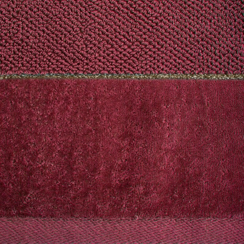 Jednobarwny ręcznik z miękkiej i chłonnej tkaniny bawełnianej o splocie frotte zdobiony kolorową bordiurą w stylu fastrygi. Łatwy w praniu, nie farbuje. szerokość: 70 cm, długość: 140 cm, kolor: ciemnozielony, Gramatura: 500 GSM, Skład: 100%...
