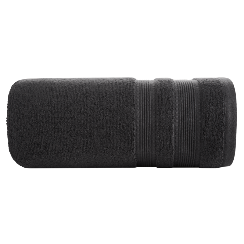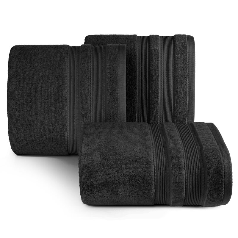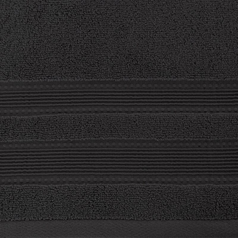 Jednobarwny ręcznik z miękkiej i chłonnej tkaniny bawełnianej o splocie frotte zdobiony kolorową bordiurą w stylu fastrygi. Łatwy w praniu, nie farbuje. szerokość: 70 cm, długość: 140 cm, kolor: stalowy, Gramatura: 550 GSM, Skład: 75% bawełna, 25% modal SZT.3
