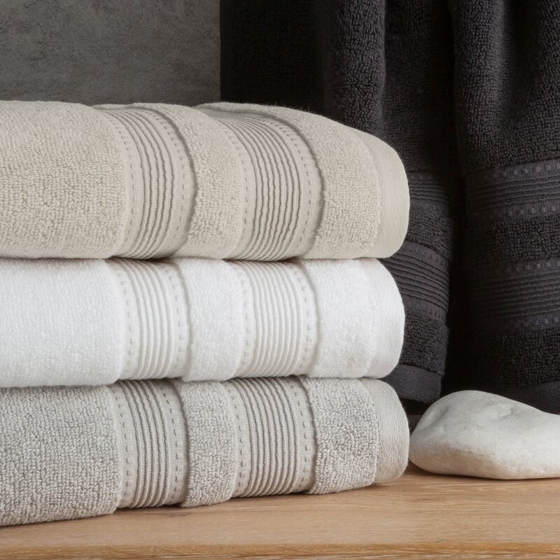 Jednobarwny ręcznik z miękkiej i chłonnej tkaniny bawełnianej o splocie frotte zdobiony kolorową bordiurą w stylu fastrygi. Łatwy w praniu, nie farbuje. szerokość: 70 cm, długość: 140 cm, kolor: jasnoszary, Gramatura: 550 GSM, Skład: 75% bawełna,...