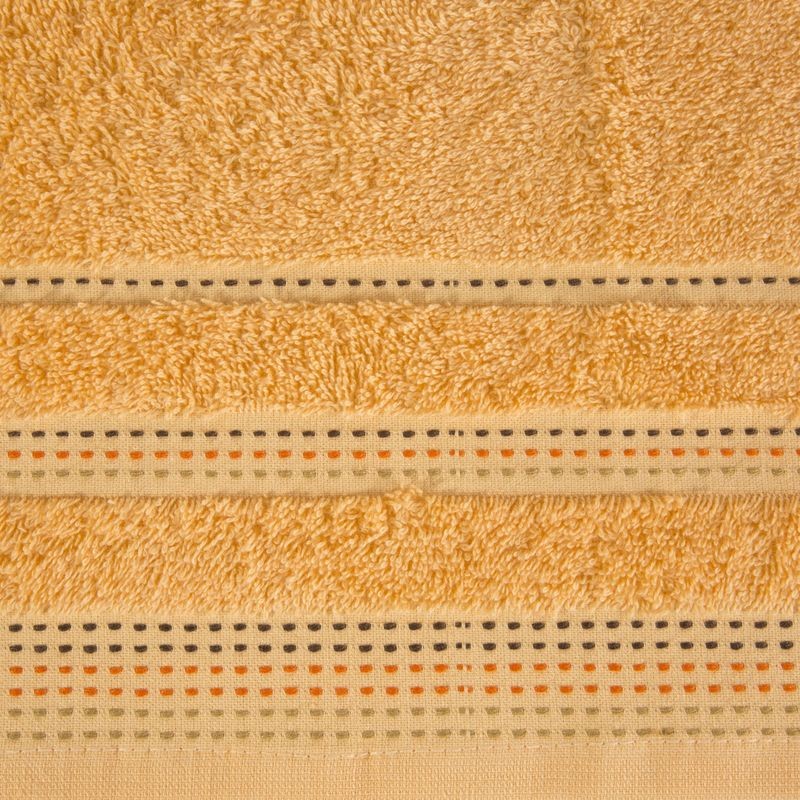 Jednobarwny ręcznik z miękkiej i chłonnej tkaniny bawełnianej o splocie frotte zdobiony kolorową bordiurą w stylu fastrygi. Łatwy w praniu, nie farbuje. szerokość: 70 cm, długość: 140 cm, kolor: pomarańczowy, Gramatura: 500 GSM, Skład: 100% bawełna SZT.3