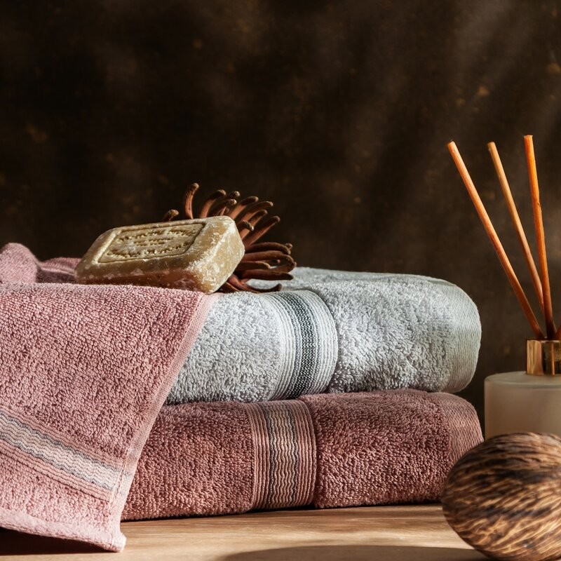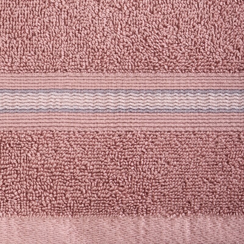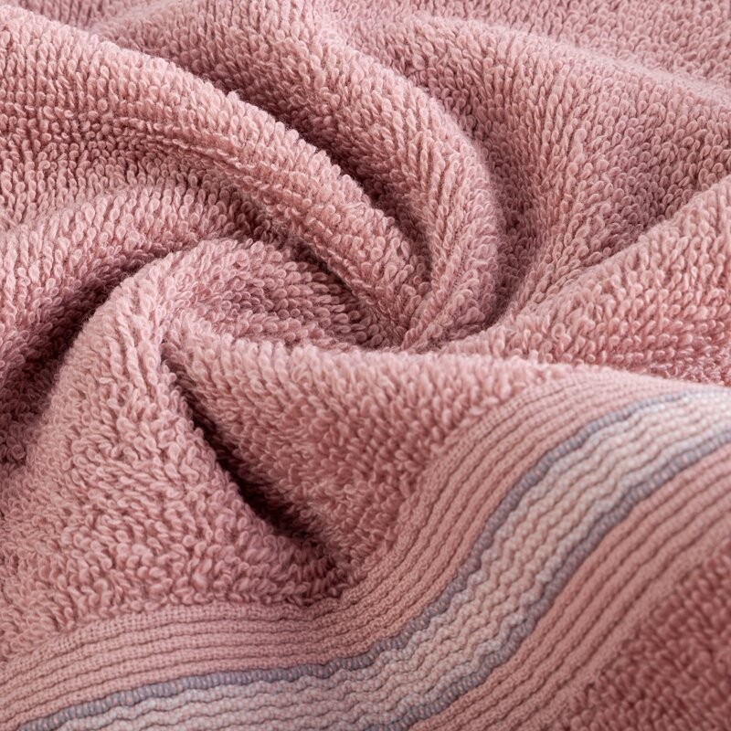 Ręcznik wyróżnia się estetyczną, tkaną bordiurą w kontrastujące pasy, która nadaje mu nowoczesny, elegancki charakter i sprawia, że będzie stylowym dodatkiem do każdej łazienki.
