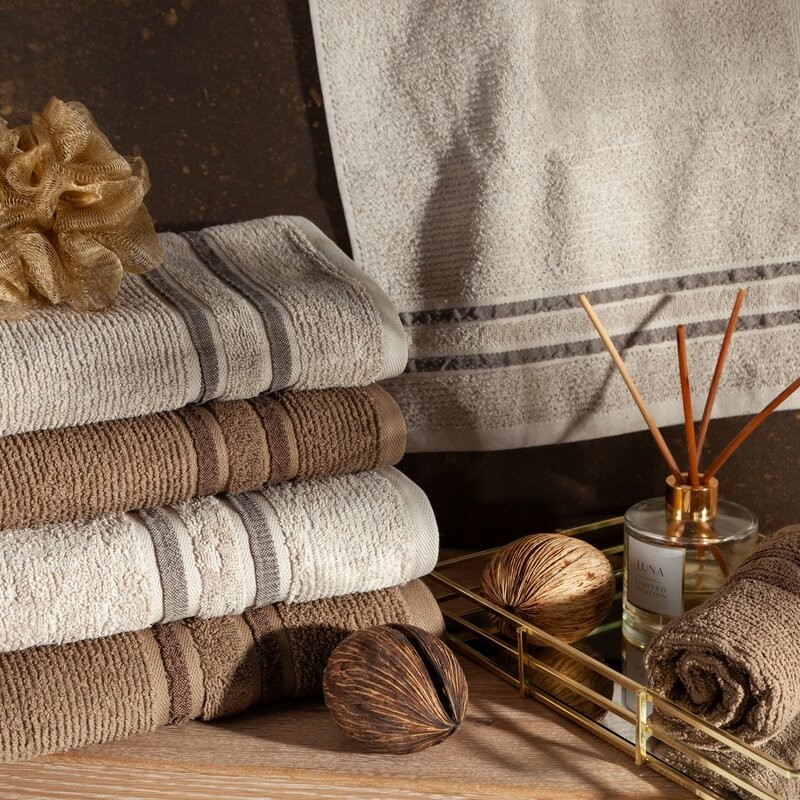 Ręcznik z ozdobną bordiurą w pasy szerokość: 50 cm, długość: 90 cm, kolor: kremowy, Gramatura: 500 GSM, Skład: 100% bawełna SZT.6