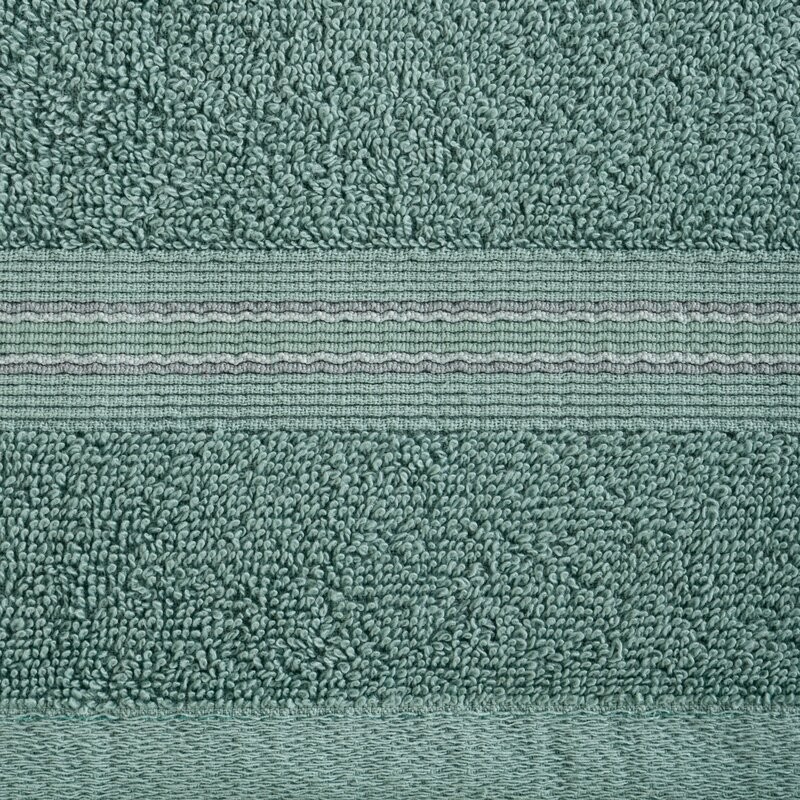 Ręcznik wyróżnia się estetyczną, tkaną bordiurą w kontrastujące pasy, która nadaje mu nowoczesny, elegancki charakter i sprawia, że będzie stylowym dodatkiem do każdej łazienki.