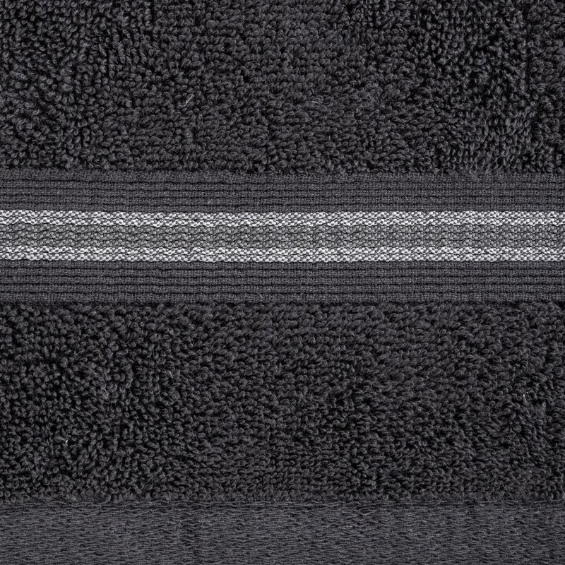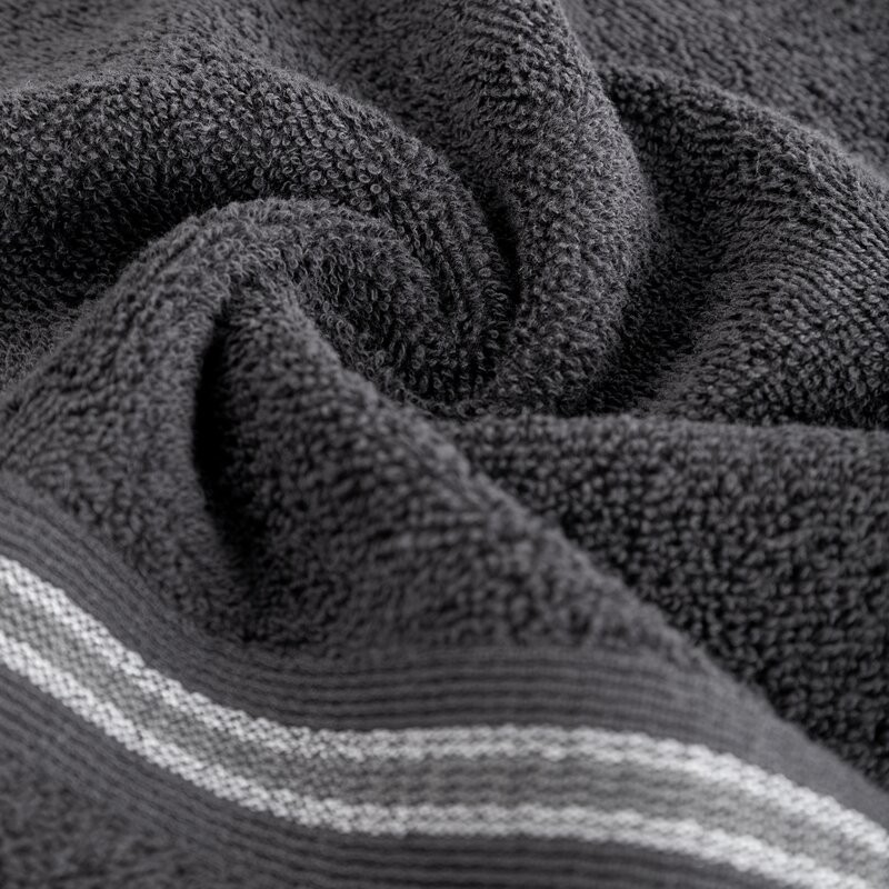 Ręcznik wyróżnia się estetyczną, tkaną bordiurą w kontrastujące pasy, która nadaje mu nowoczesny, elegancki charakter i sprawia, że będzie stylowym dodatkiem do każdej łazienki.