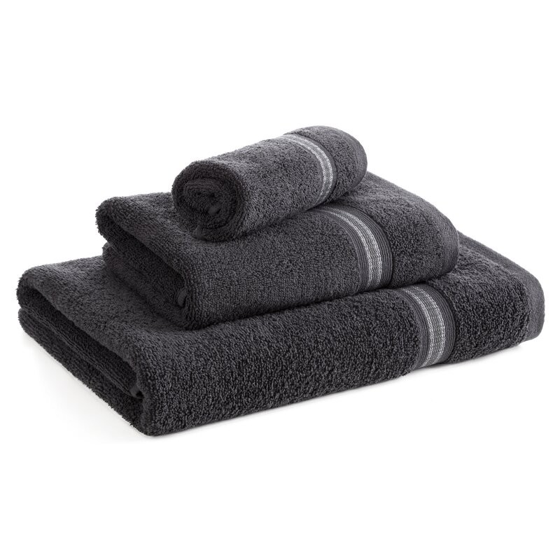 Ręcznik wyróżnia się estetyczną, tkaną bordiurą w kontrastujące pasy, która nadaje mu nowoczesny, elegancki charakter i sprawia, że będzie stylowym dodatkiem do każdej łazienki.