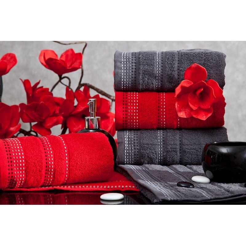 Jednobarwny ręcznik z miękkiej i chłonnej tkaniny bawełnianej o splocie frotte zdobiony kolorową bordiurą w stylu fastrygi. Łatwy w praniu, nie farbuje. szerokość: 40 cm, długość: 60 cm, kolor: bordowy, Gramatura: 500 GSM, Skład: 100% bawełna;...