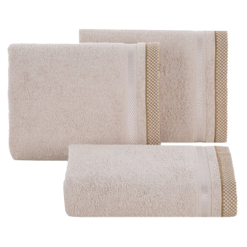 Ręcznik z ozdobną bordiurą w pasy szerokość: 70 cm, długość: 140 cm, kolor: kremowy, Gramatura: 500 GSM, Skład: 100% bawełna SZT.3