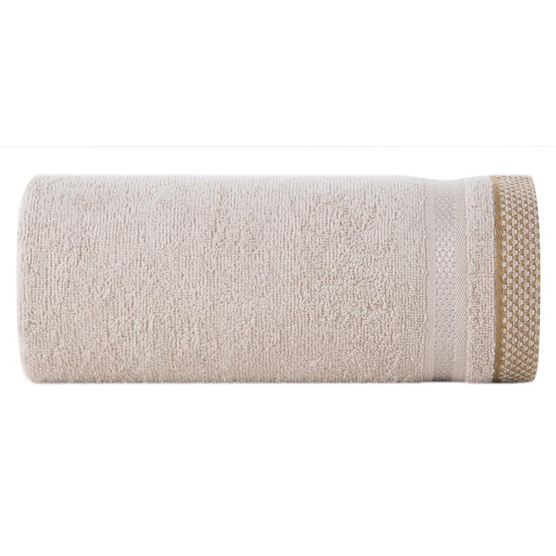 Ręcznik do rąk 30x50 cm bawełniany kolor ciemnobeżowy z bordiurą w kontrastujące pasy 500 g/m2 TRIS