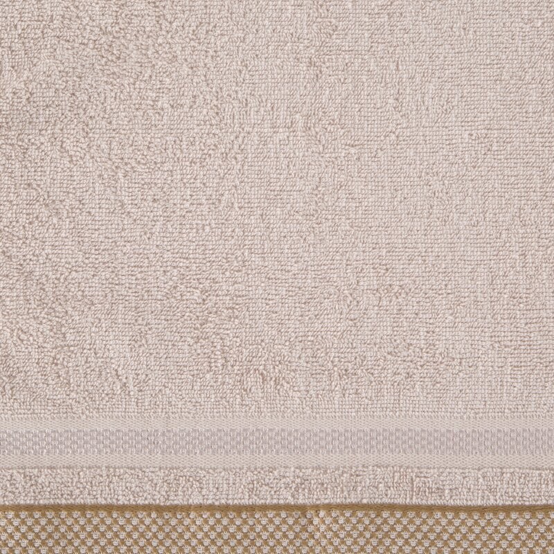 Klasyczny ręcznik kąpielowy z chłonnej tkaniny bawełnianej o splocie frotte. Minimalistyczna bordiura z weluru z dodatkiem lśniącej, metalicznej nici. szerokość: 50 cm, długość: 90 cm, kolor: kremowy, Gramatura: 500 GSM, Skład: 100% bawełna; część...