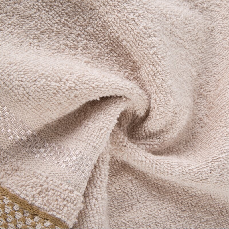 Ręcznik z welurową bordiurą szerokość: 70 cm, długość: 140 cm, kolor: kremowy, Gramatura: 500 GSM, Skład: 100% bawełna; część ozdobna: 55% bawełna, 45% poliester SZT.3