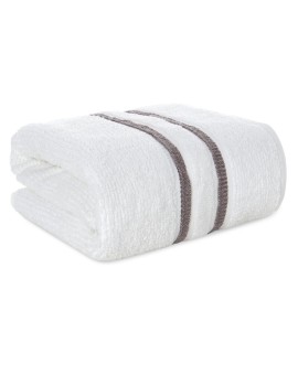 Ręcznik kąpielowy 50x90 cm bawełniany kolor beżowy z bordiurą w paski 500 g/m2 ABBIE