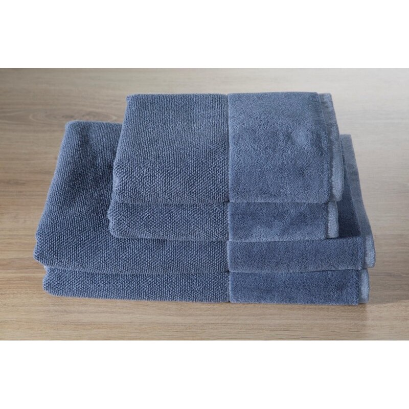 Bardzo chłonny ręcznik z miękkiej bawełny frotte z delikatnym tłoczeniem krateczki i bordiurą o tym samym, wyraźniejszym wzorze. Bardzo chłonny, łatwy w praniu. szerokość: 70 cm, długość: 140 cm, kolor: niebieski, Gramatura: 540 GSM, Skład: 100%...