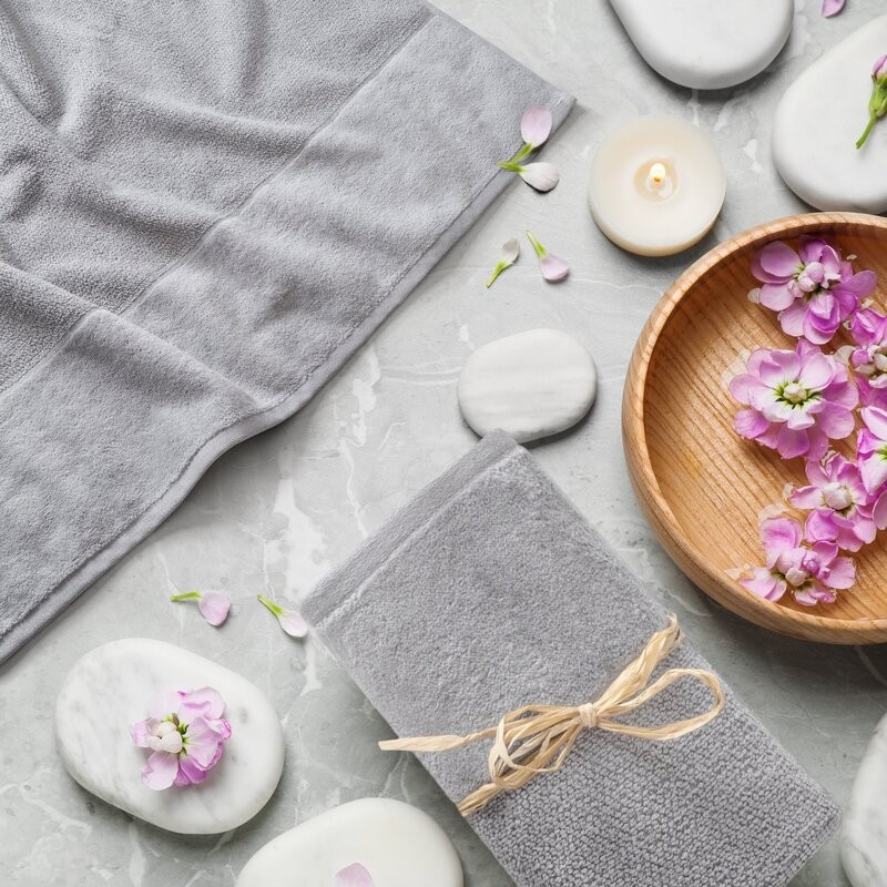 Elegancki ręcznik z delikatnej i bardzo chłonnej tkaniny frotte, jednokolorowy. Krawędzie zdobione subtelną bordiurą z welwetu. Łatwy w praniu, trwałe kolory. szerokość: 50 cm, długość: 90 cm, kolor: srebrny, Gramatura: 500 GSM, Skład: 100%...