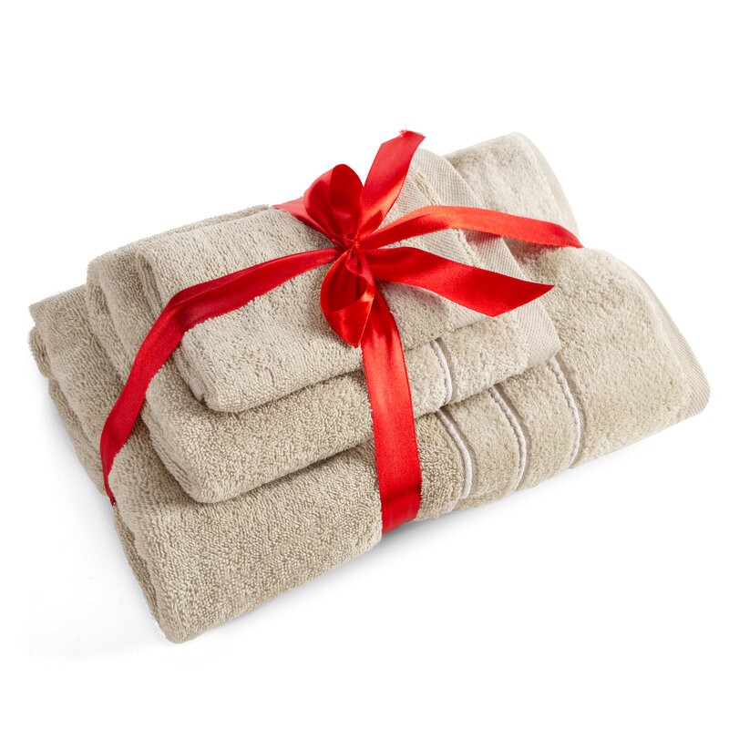 Ręcznik bawełniany o strukturze w prążki z welurową bordiurą szerokość: 50 cm, długość: 90 cm, kolor: beżowy, Gramatura: 500 GSM, Skład: 100% bawełna SZT.6