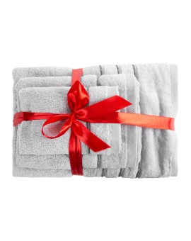 Elegancki ręcznik z delikatnej i bardzo chłonnej tkaniny frotte, jednokolorowy. Krawędzie zdobione subtelną bordiurą z welwetu. Łatwy w praniu, trwałe kolory. szerokość: 70 cm, długość: 140 cm, kolor: srebrny, Gramatura: 500 GSM, Skład: 100%...