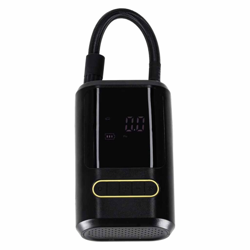 Funkcje: pompowanie opon i piłek, latarka, pomiar ciśnienia, kontrola ciśnienia w oponach, SOS, powerbank, szybkie ładowanie z portem USB-C