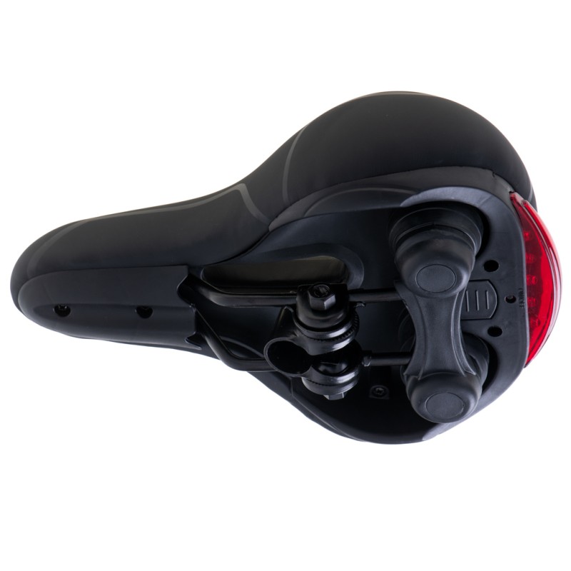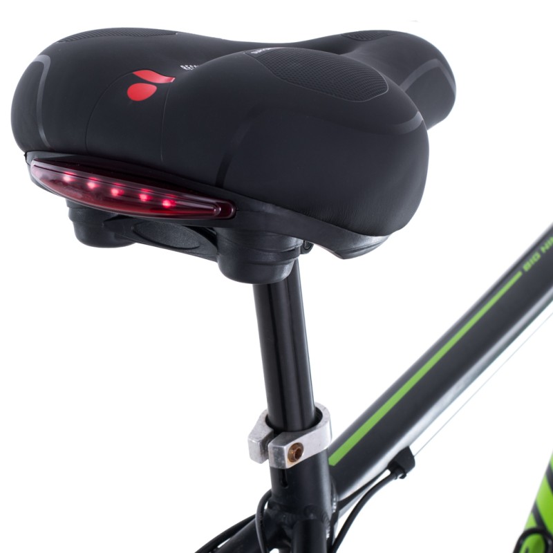 Dodatkowo lampka LED znajdująca się z tyłu siodełka zapewnia dodatkowe bezpieczeństwo w trakcje jazdy rowerem, szczególnie po zmroku.