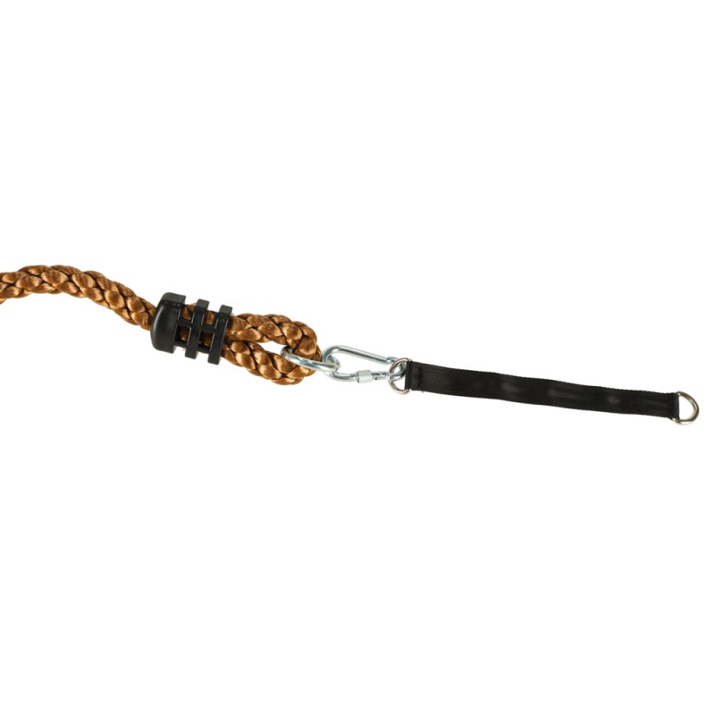 Produkt nieodpowiedni dla dzieci poniżej 6 roku życia. Opakowanie nie jest zabawką - nie udostępniaj dziecku. Produkt przeznaczony do montażu na stabilnych i wytrzymałych konstrukcjach. Nie używaj liny na ostrych krawędziach ani w miejscach mogących ją przetrzeć. Regularnie sprawdzaj stan liny i mocowania. Przed użyciem zapoznaj się z instrukcją obsługi.