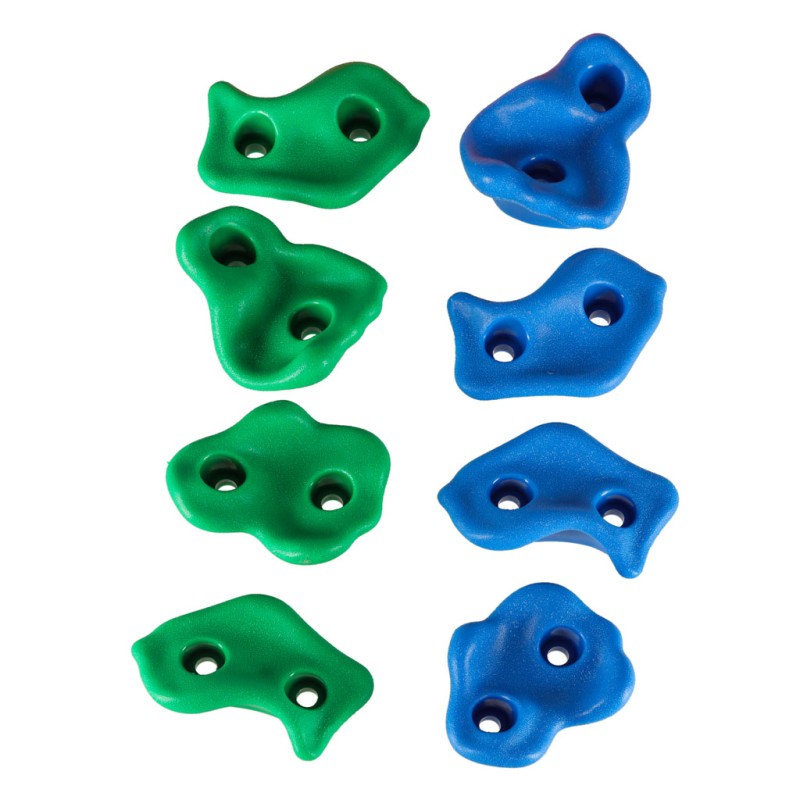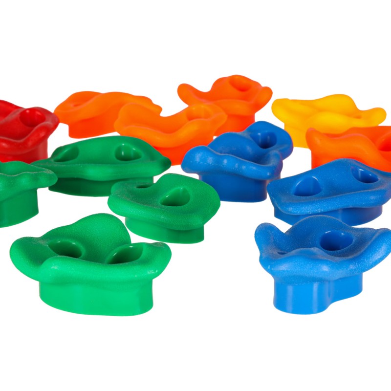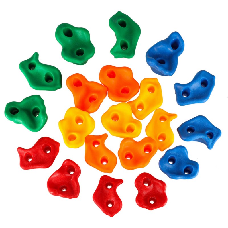 Zestaw zawiera aż 20 różnorodnych kamieni do wspinaczki, czyli specjalnych uchwytów do wspinaczki dla dzieci, które pozwalają tworzyć trasę wspinaczkową dopasowaną do poziomu dziecka. Kształty i kolory zostały zaprojektowane z myślą o najmłodszych - każdy chwyt jest dobrze wyprofilowany i bezpieczny dla dłoni i stóp.