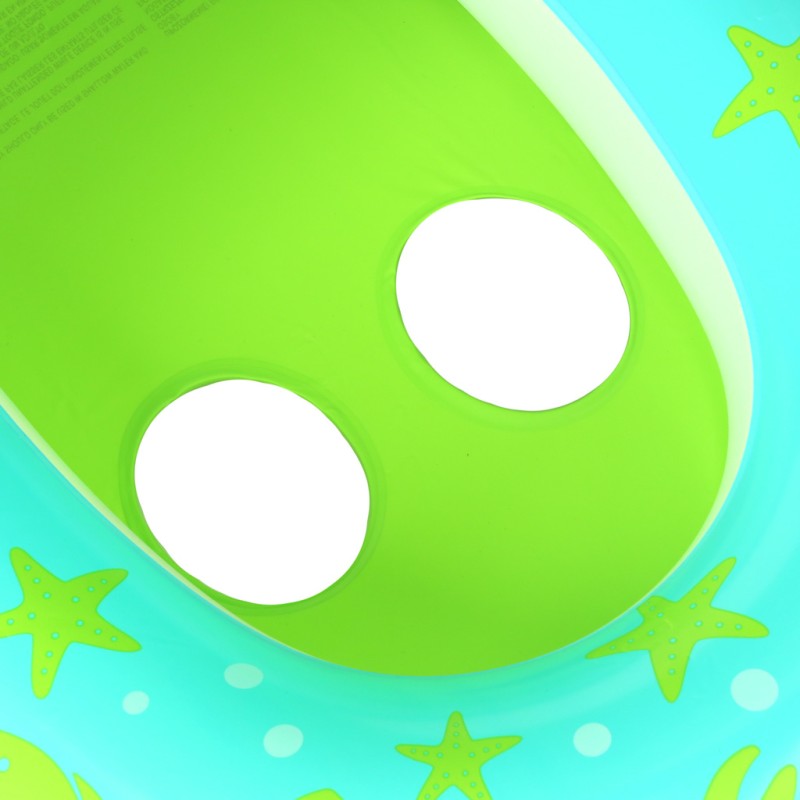 Zielone koło z siedziskiem to idealna propozycja dla malucha, który dopiero zaczyna naukę pływania. Dzięki otworom na nóżki, dziecko będzie stabilnie siedzieć w kółku i z niego nie wypadnie. Dmuchany daszek zapewnia ochronę delikatnej skóry dziecka od szkodliwych promieni słonecznych. Co więcej, idąc na basen, daszek można zdemontować. Koło jest wykonane z wytrzymałego PVC, dzięki czemu posłuży niejeden sezon letni.
