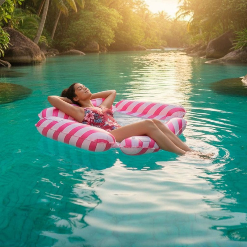 Materac dmuchany wodny posiada ergonomiczny kształt, który dostosowuje się do ciała, gwarantując wygodę podczas leżenia i delikatnego kołysania na falach. Zastosowana siatka z PVC zapewnia przyjemne chłodzenie, a wyporność dzięki dmuchanym elementom pozwala unosić się na powierzchni wody bez wysiłku. To niezastąpiony sposób na relaks na wodzie, który koi ciało i umysł.