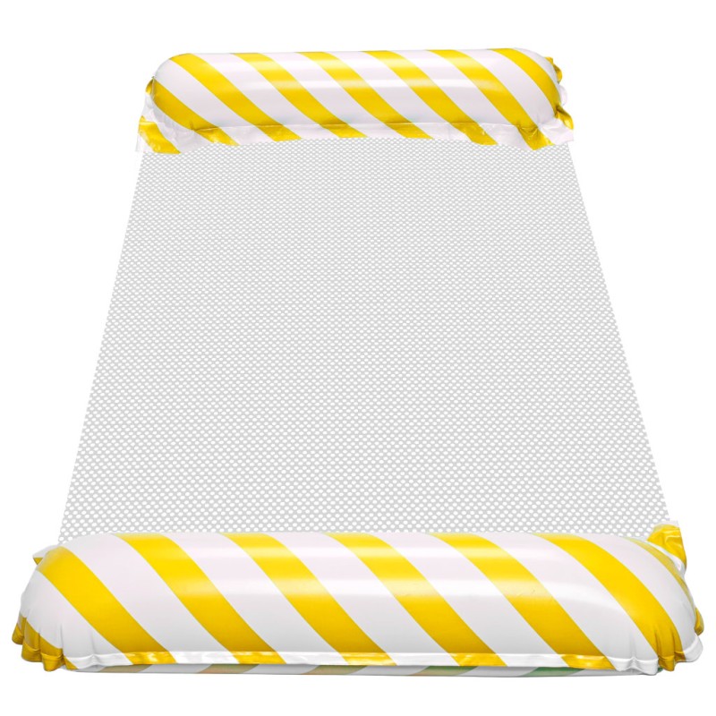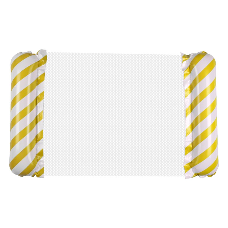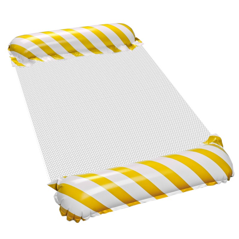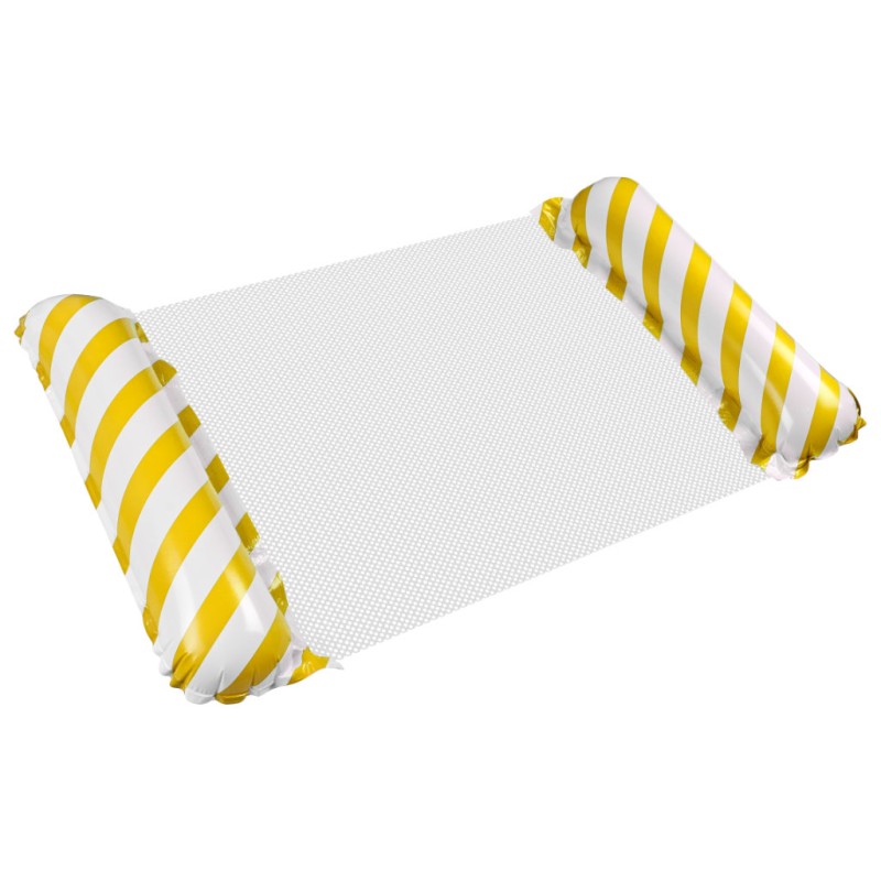 Wodny dmuchany materac w żółto-białe paski umili czas relaksu na plaży i basenie. Konstrukcja z siateczką unosi aż 70 kg i jest prosty w pakowaniu. Wymiary: 110 cm x 70 cm, kolor: żółty
