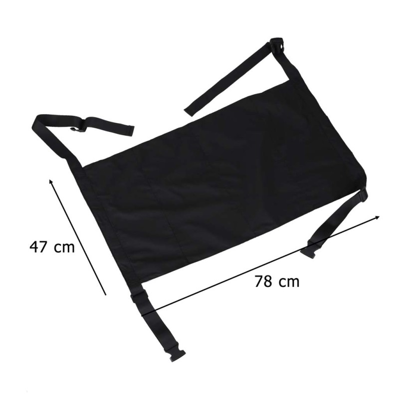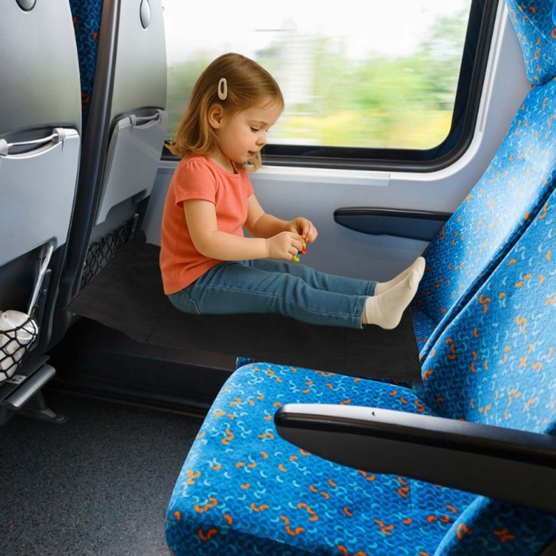 Praktyczny dziecięcy leżak podróżny do zawieszenia między fotelami w pociągu lub w samolocie. Regulowane zapięcie na klamry zatrzaskowe zapewnia najmłodszym komfort podczas długich podróży. Wymiary maty: 47 x 78 cm, kolor: czarny.