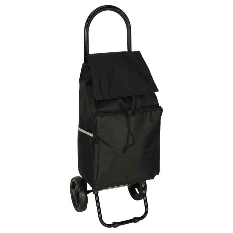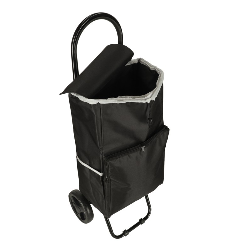 Czarny wózek z torbą na zakupy ze ściągaczem i termiczną kieszenią możesz zabrać do sklepu i na wycieczkę. Jest lekki i łatwy w prowadzeniu, a do tego kompaktowy - mieści się w bagażniku. Wymiary: 95 cm x 18 cm x 23 cm, kolor: czarny