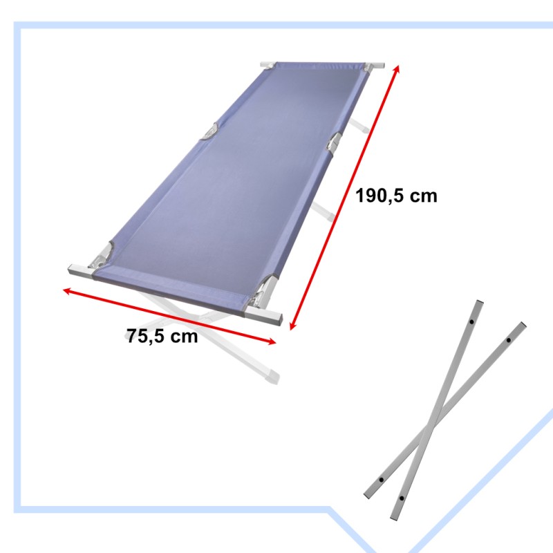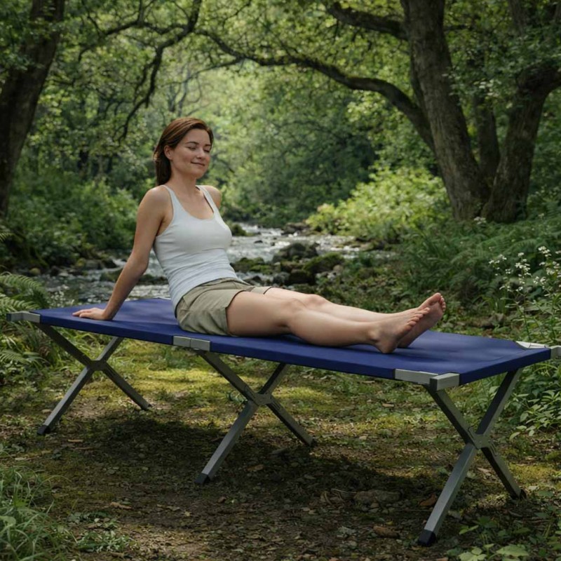 Solidna stalowa konstrukcja zapewnia stabilność, a szerokie poszycie daje wygodę nawet przy dłuższym odpoczynku. Spokojnie utrzyma osobę dorosłą do 150 kg. Łóżko rozkłada się w kilka sekund – bez konieczności użycia dodatkowych narzędzi.