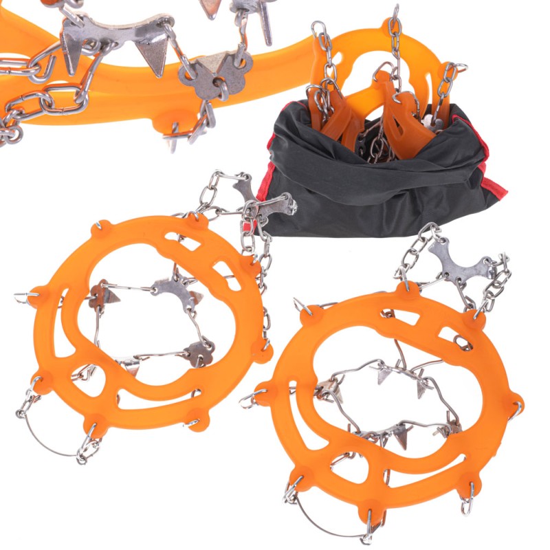 Raki na buty z kolcami - przeznaczone są do poruszania się w górskim terenie zaśnieżonym lub zalodzonym. Nie niszczą obuwia. Zapakowane w pokrowiec. Tworzywo: stal hartowana + stal nierdzewna. Rozmiar: uniwersalny (39-45).