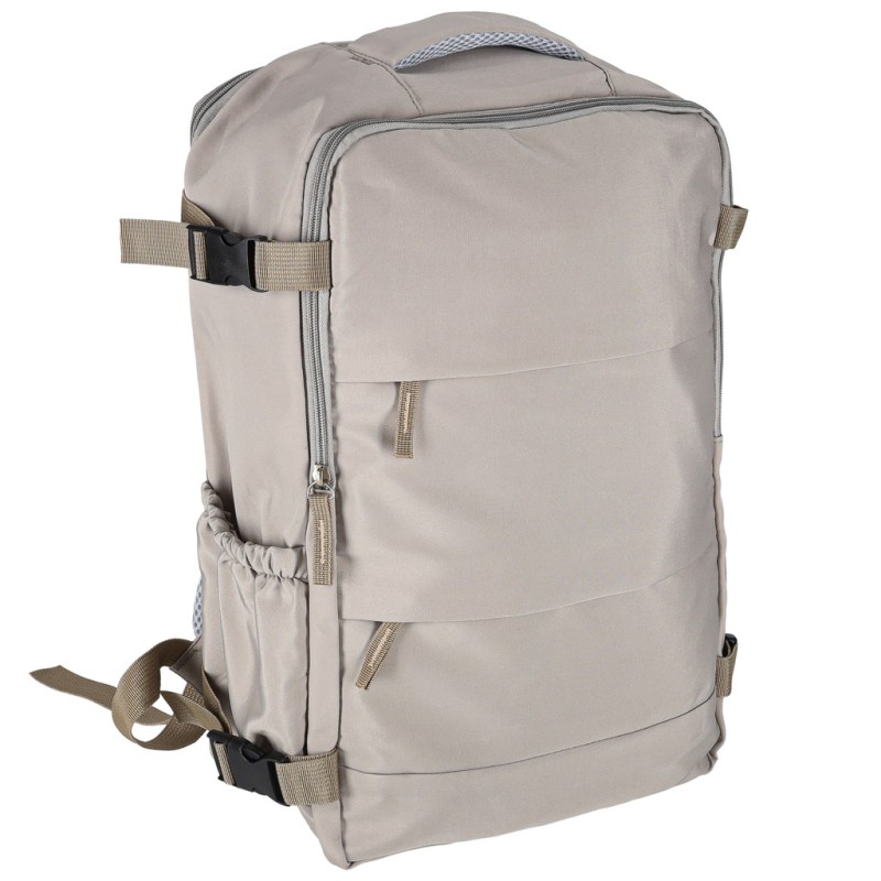 Wielofunkcyjny plecak podróżny znajdzie zastosowanie zarówno podczas weekendowych wyjazdów, jak i w czasie urlopu. Trzy komory oraz duża ilość kieszeni umożliwia dokładne i kompleksowe spakowanie plecaka na drogę. Boczne kieszenie na gumce pomieszczą termos lub butelkę z wodą, zaś przednie zapinane kieszenie są przeznaczone na drobne akcesoria.