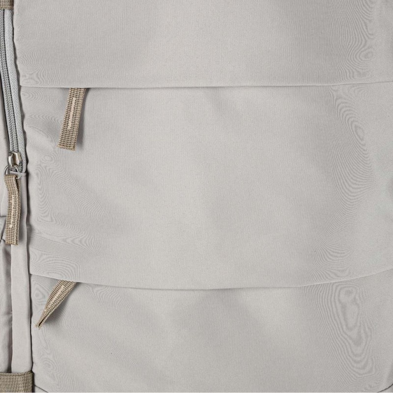 Szary plecak z pasami kompresyjnymi oraz trzema rozpinanymi komorami. Można go wziąć na wędrówkę, na wakacje, do samochodu oraz do pociągu. Ma wymiary 45 cm x 30 cm - szelki z siateczką zapewniają komfort i wygodę noszenia.