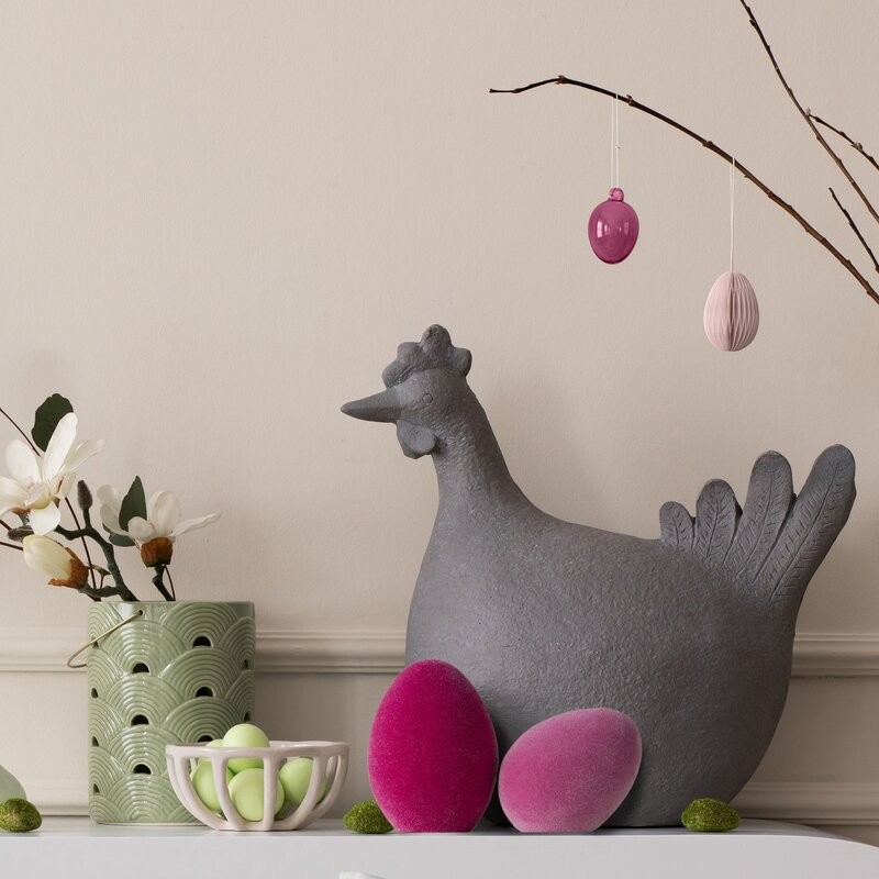 Wielkanocna figurka dekoracyjna szerokość: 7 cm, długość: 9 cm, kolor: jasnoróżowy, Skład: 100% żywica poliestrowa SZT.2