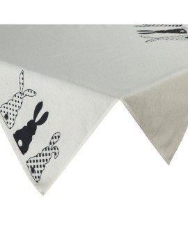 Obrus wielkanocny WIOSNA z welwetu zdobiony nadrukiem siedzących zajączków