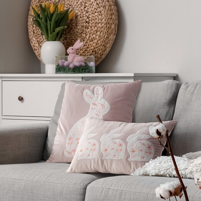 Poszewka wielkanocna WIOSNA 1 z weluru zdobiona nadrukiem zajączka