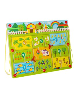 Gra labirynt magnetyczna planszowa drewniana do podróży farma 2 graczy