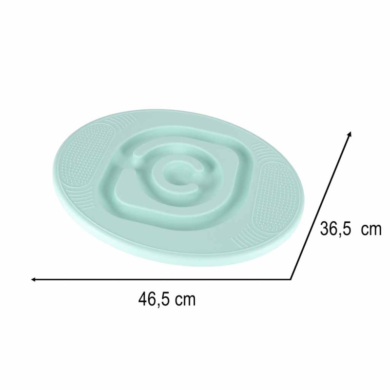 Miętowa deska balansowa o wymiarach 46,5 × 36,5 × 6 cm to stabilna platforma treningowa z labiryntem i kulkami (O 2,3 cm). Wykonana z tworzywa sztucznego i gumy, wytrzymuje obciążenie do 90 kg. Powierzchnia antypoślizgowa zwiększa bezpieczeństwo.