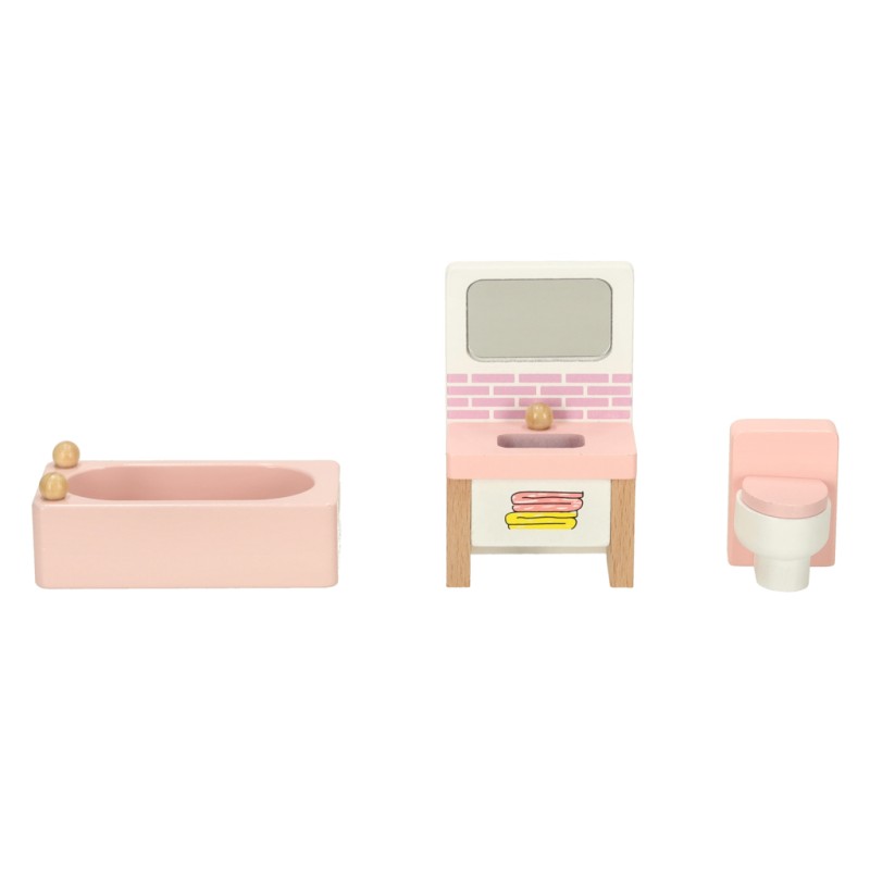 MEBELKI DO DOMKU DLA LALEK SALON SYPIALNIA ŁAZIENKA KUCHNIA DREWNIANE RÓŻOWE