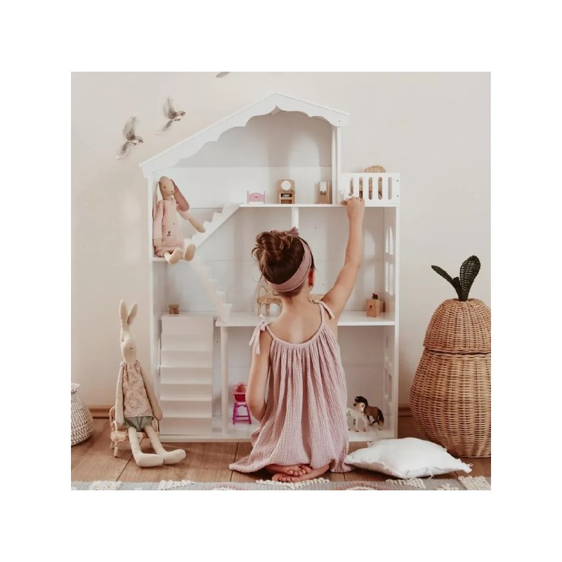 Regał może służyć nie tylko jako zwykły mebel, na który można odstawić książki, ale również z powodzeniem w trakcie zabawy sprawdzi się jako domek dla lalek.