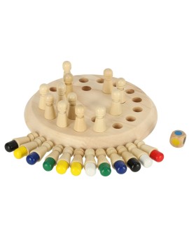 Drewniana gra logiczna chińczyk. Polega na wyrzuceniu kostką koloru, odnalezieniu go na planszy i zebraniu jak najwięcej pionków. Gra wspomoże pamięć i logiczne myślenie. W zestawie: okrągła podstawa, 24 pionki i kostka. Średnica podstawy: 16cm.