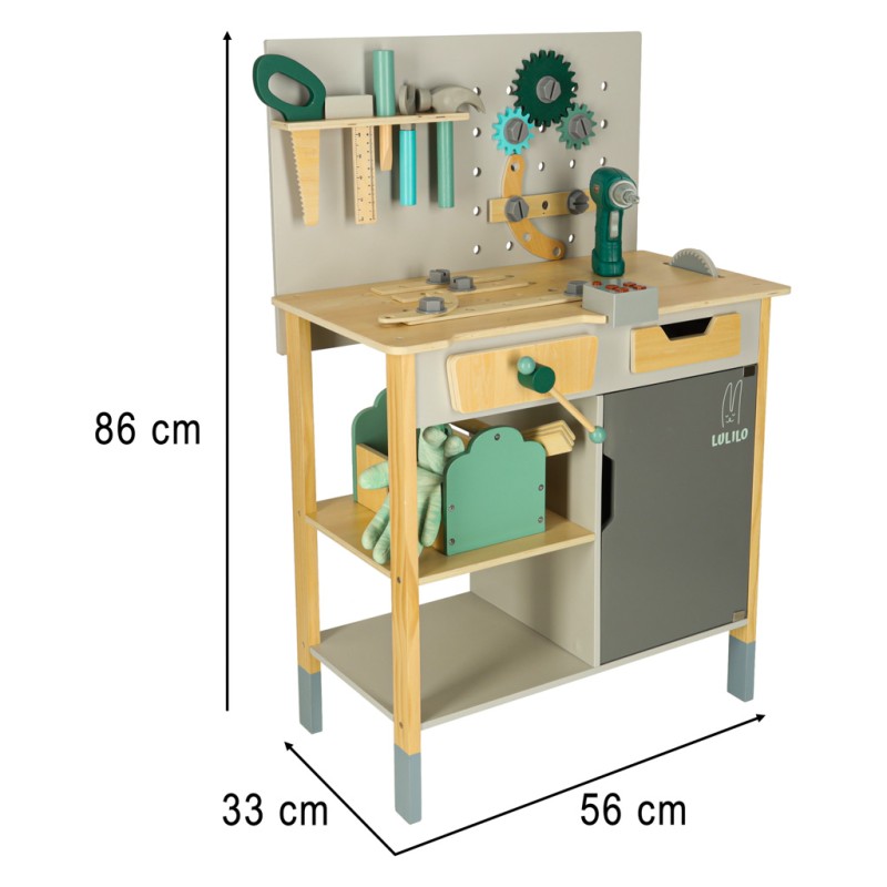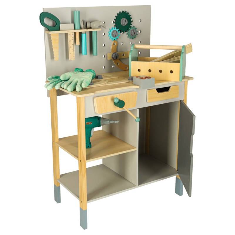 Zapewnia bezpieczne warunki zabawy – to dobry sposób na zapoznanie dziecka z wyposażeniem warsztatu w domu lub w szkole