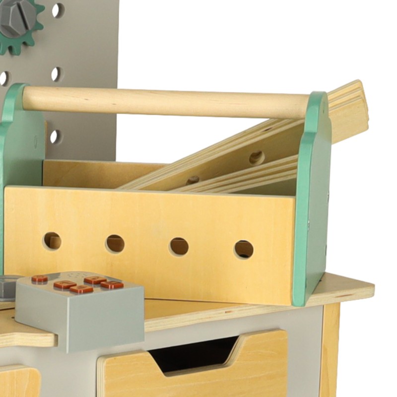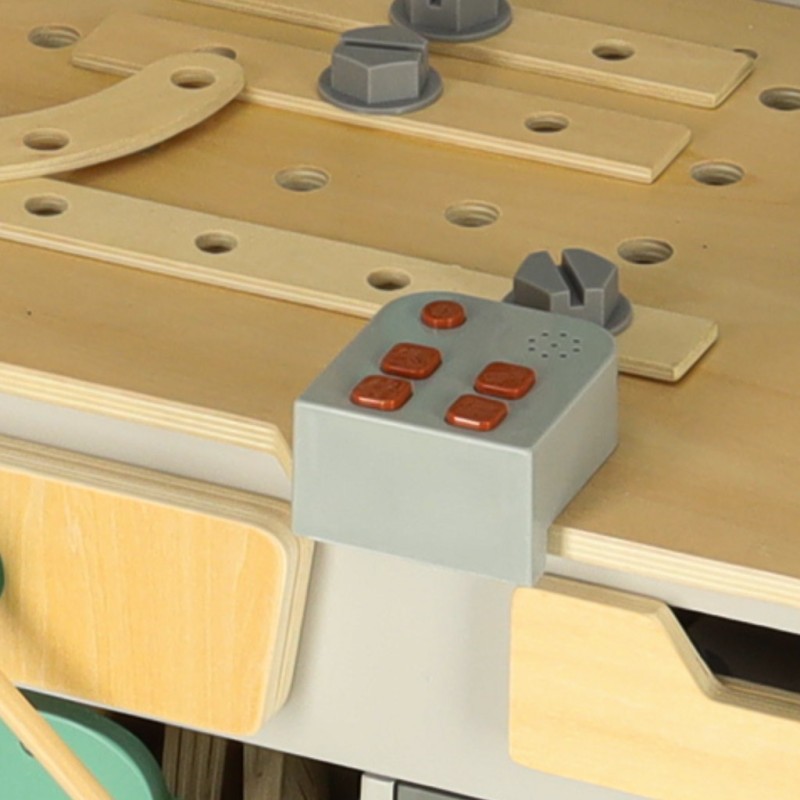Warsztat małego majsterkowicza z pilotem wydającym dźwięki to idealne miejsce do zabawy i nauki. W bezpiecznej przestrzeni maluch uczy się nazywać i odróżniać narzędzia, a także poznaje zasady obowiązujące w trakcie pracy z nimi.