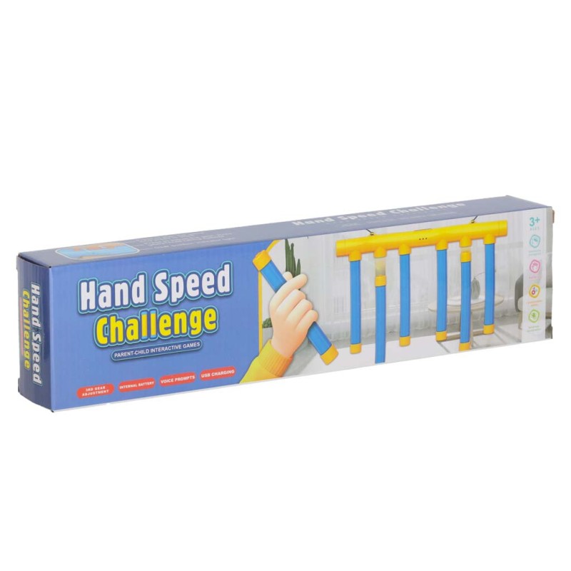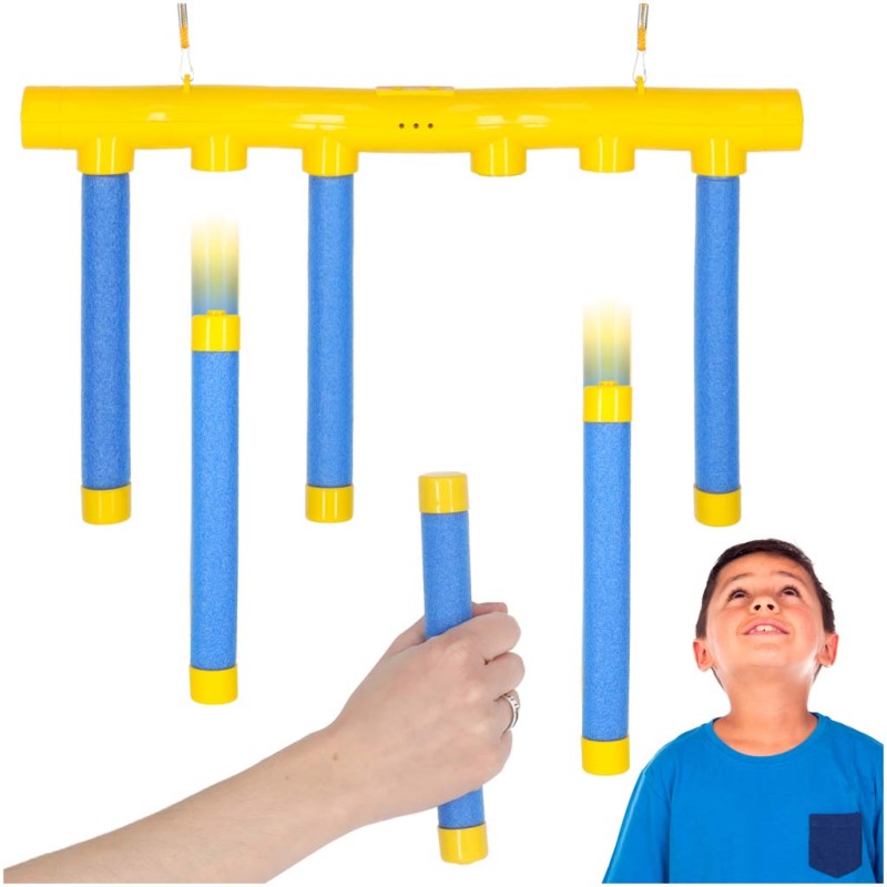 Interaktywna gra Spadające Pałeczki - graj solo, w parze lub drużynowo. Można ustawić 3 prędkości spadania w celu regulacji poziomu trudności. Zabawka dla dorosłych i dzieci od 3 roku życia. Wymiary: 38,5 cm x 21 cm, kolor: żółty, niebieski