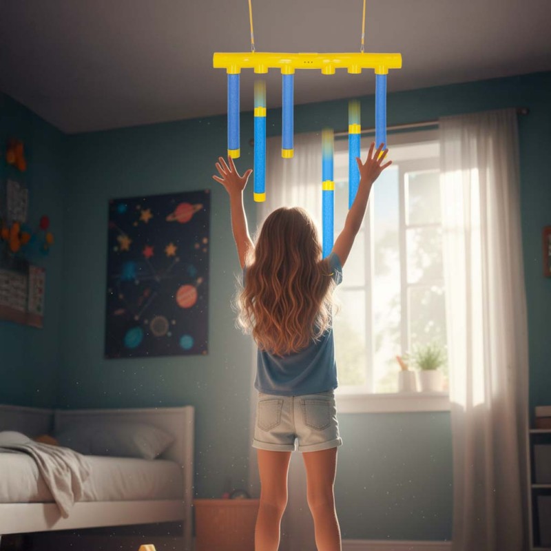 Pałeczki można zawiesić pod sufitem lub zaczepić za pomocą haczyków. Szybkość spadania można łatwo dostosować za pomocą przycisków. Urządzenie ma wbudowany automatyczny tryb wyłączania po 1 minucie bezczynności – takie rozwiązanie optymalizuje zużycie energii.